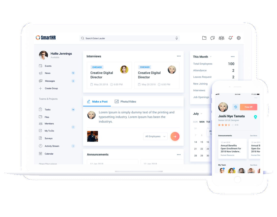 Social media is the buzz of the world, and SenseApp SmartHR has it in its basket. It lets you post text-based and multimedia content. Along with a timeline having complete insights of the company, creating polls or chatting on the messenger is also available in the SmartHR.